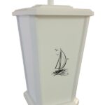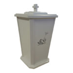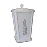 Valkoinen uurna jossa painettu joutsenen kuva.