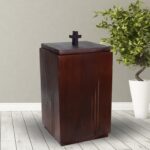 Tummanruskea mäntyuurna, kyljessä kaiverretut kolme viivaa.