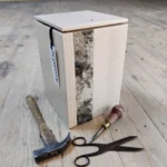 Kotimainen vaaleansävyinen uurna jossa koivutuohikuviointi.